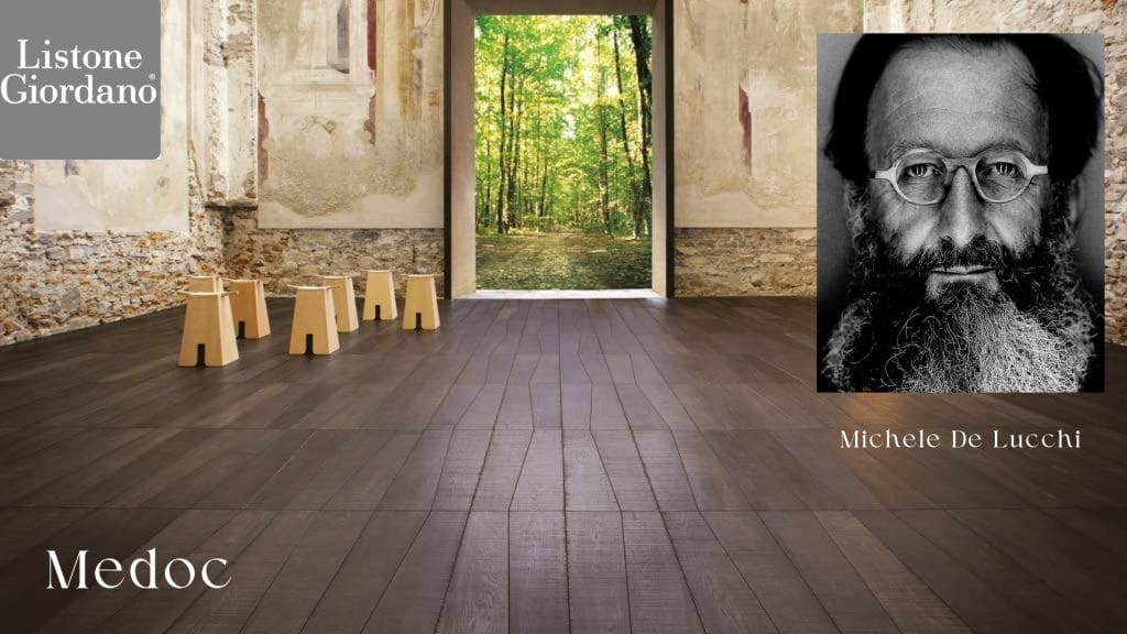 Medoc, delo arhitekta Micheleja De Lucchija, je zasnovan z idejo avtentičnosti. Deske so poševno odrezane in sledijo naravni geometriji drevesa. Ta inovativni pristop ne ustvarja le vizualnega učinka, temveč spoštuje les kot surovino in dediščino mizarstva.