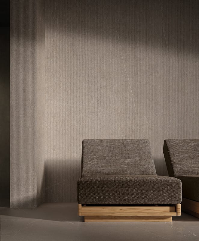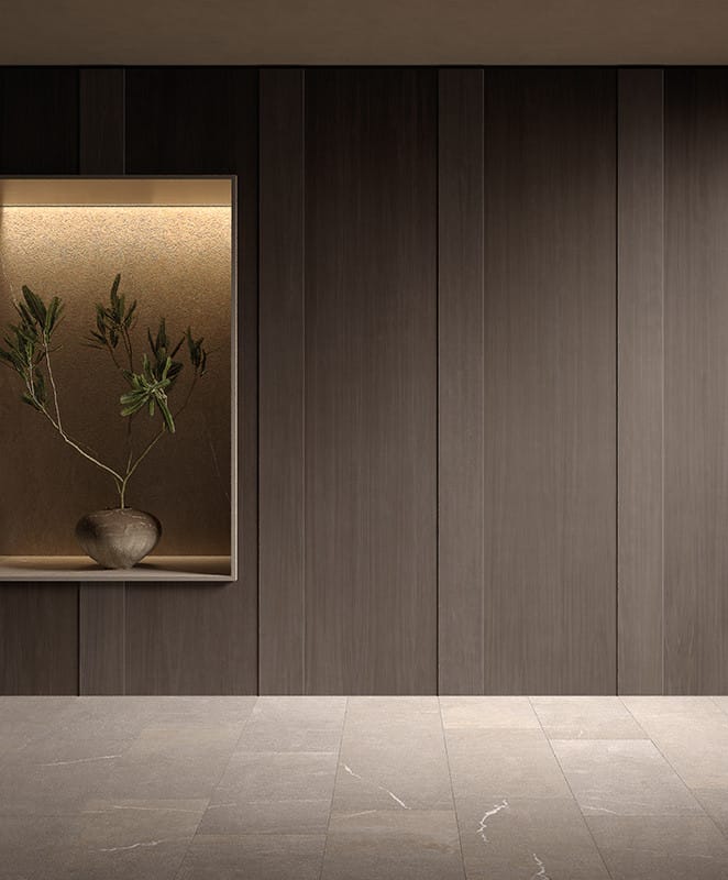 Te večje plošče se uporabljajo predvsem na stenah, kjer lahko ustvarijo skoraj neprekinjene površine brez vidnih prekinitev. Vizualni učinek je izjemen. Stena deluje kot enoten material, brez razdrobljenosti.