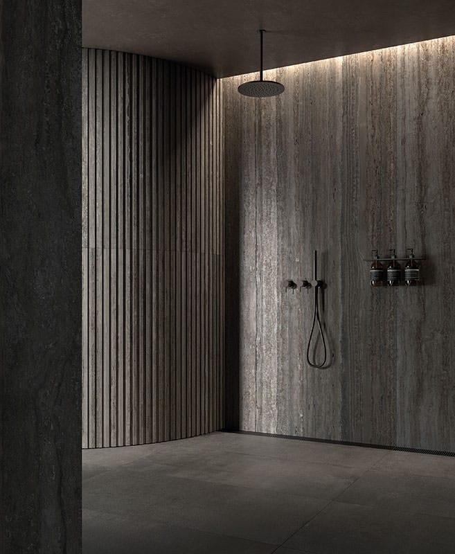 A tudi tukaj je treba razmišljati celostno. Ni dovolj, da je ploščica velika. Pomembno je, kako se stika, kako so izvedeni robovi, kako so oblikovane niše in police. V tušu štejejo detajli. In prav pri velikih formatih postanejo ti detajli najbolj vidni.
