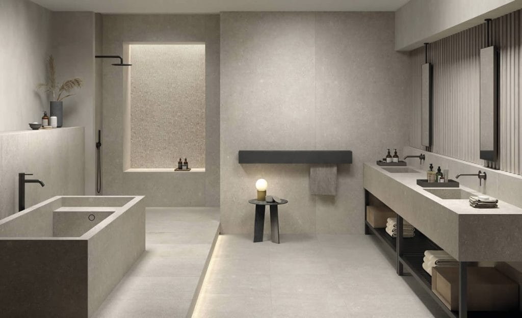 Velike ploščice za kopalnico niso več izjema, ampak postajajo standard v sodobnem oblikovanju. Ne zaradi trenda, ampak zaradi občutka prostora, ki ga ustvarijo. Manj fug pomeni manj vizualnega šuma, večje površine pa dajejo prostoru mir in kontinuiteto.