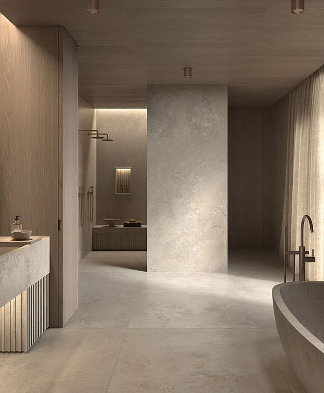 Pri kakovostnem gres porcelanu, kot ga razvija Kronos Ceramiche, so dimenzije natančne, robovi rektificirani in površina stabilna. To omogoča minimalne fuge in čiste linije, ki jih pri velikih formatih pričakujemo.